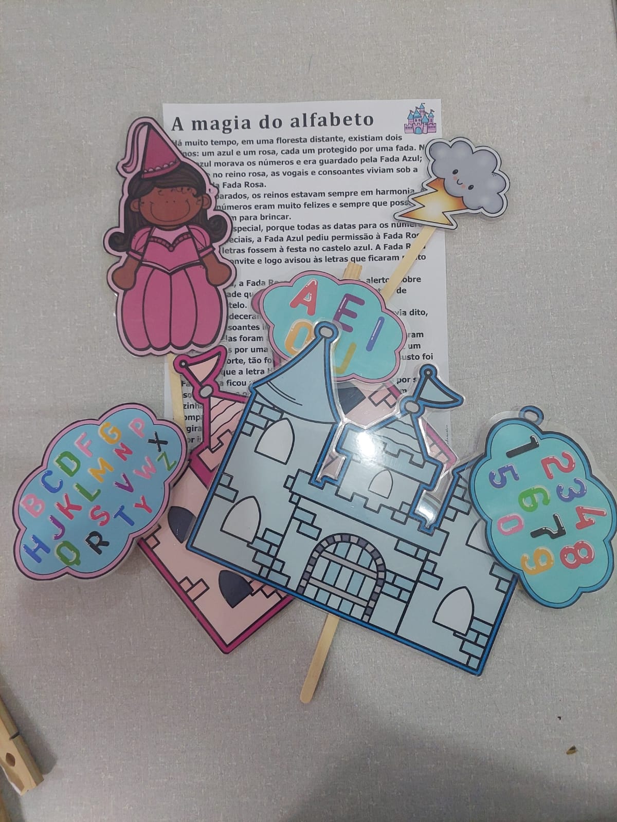 Aprendizado Ativo: A criança aprende “fazendo” ao separar fisicamente o que é letra do que é número nos castelos.