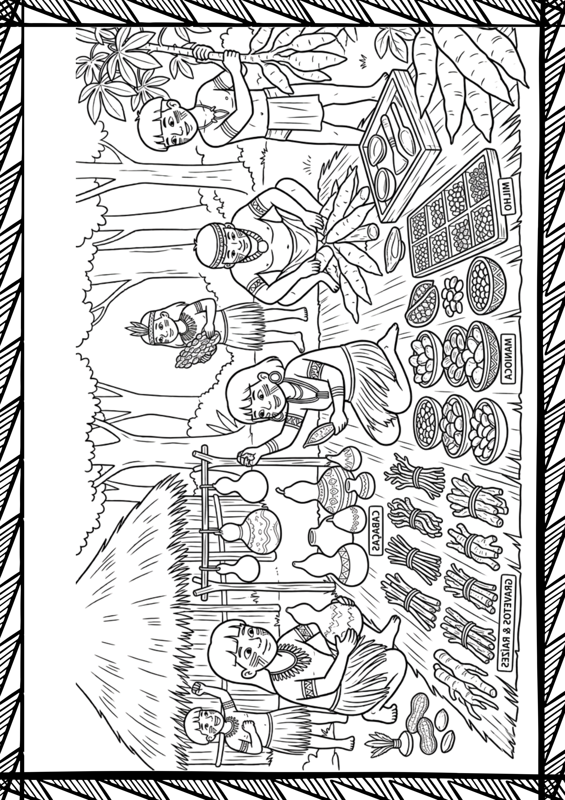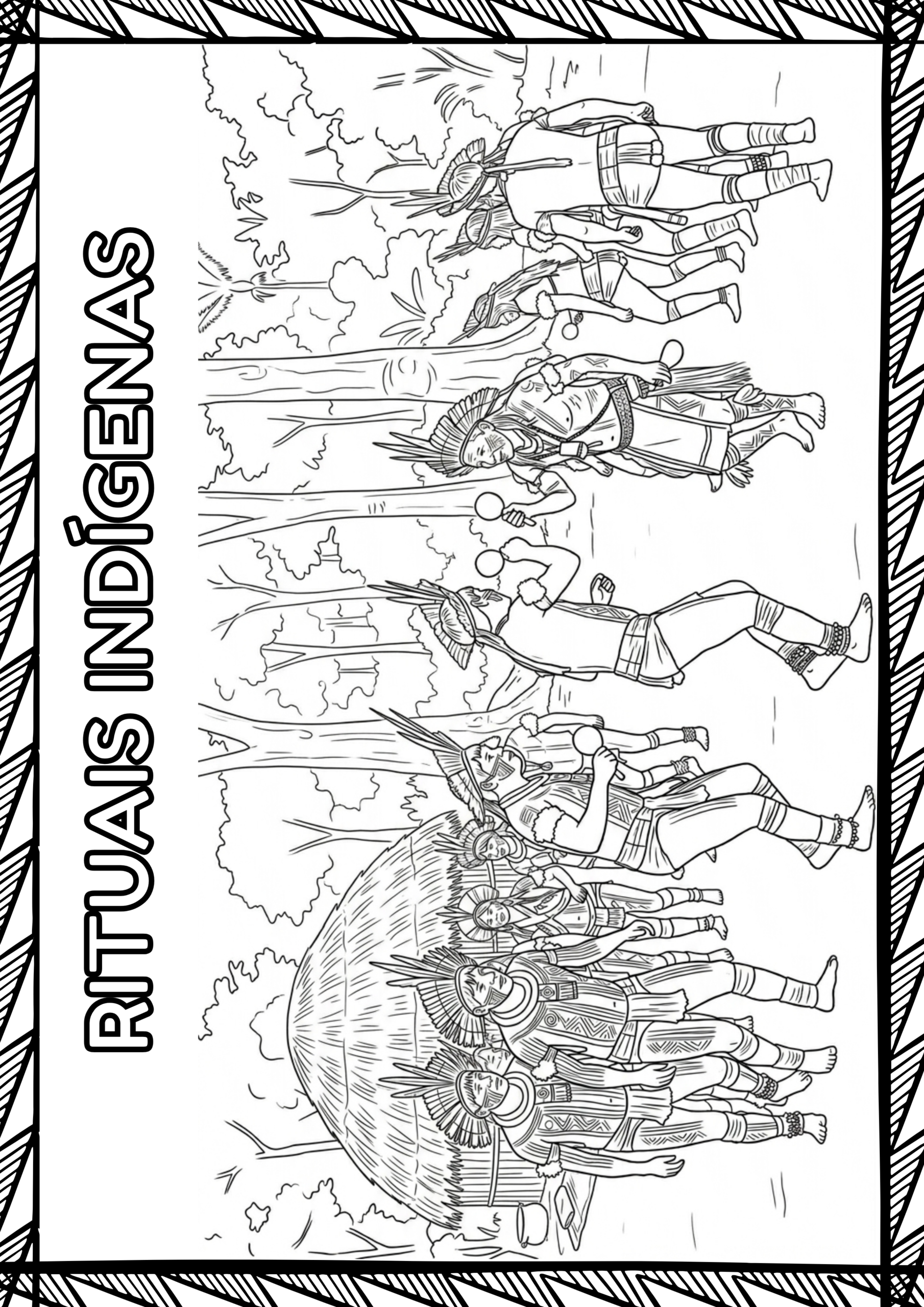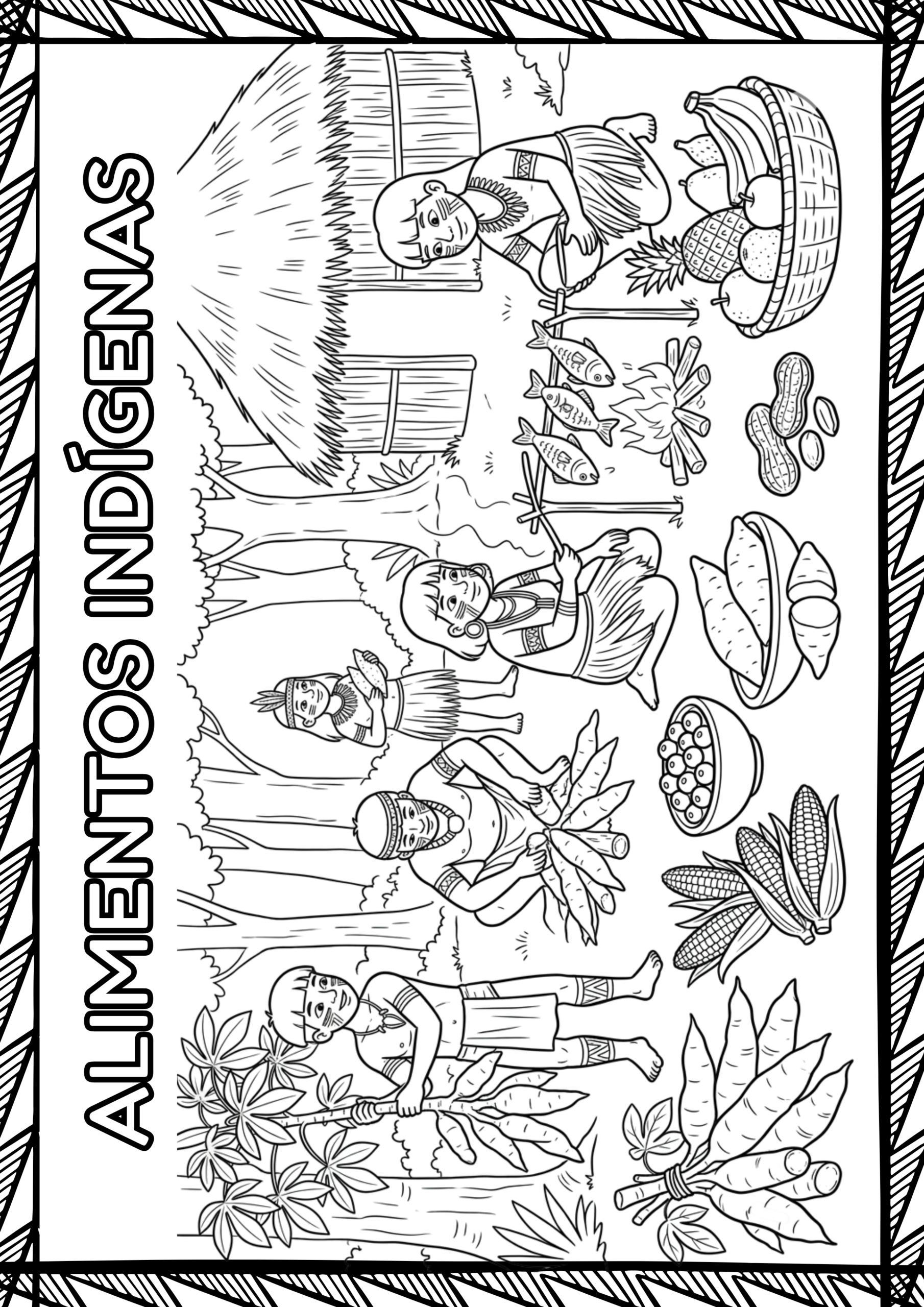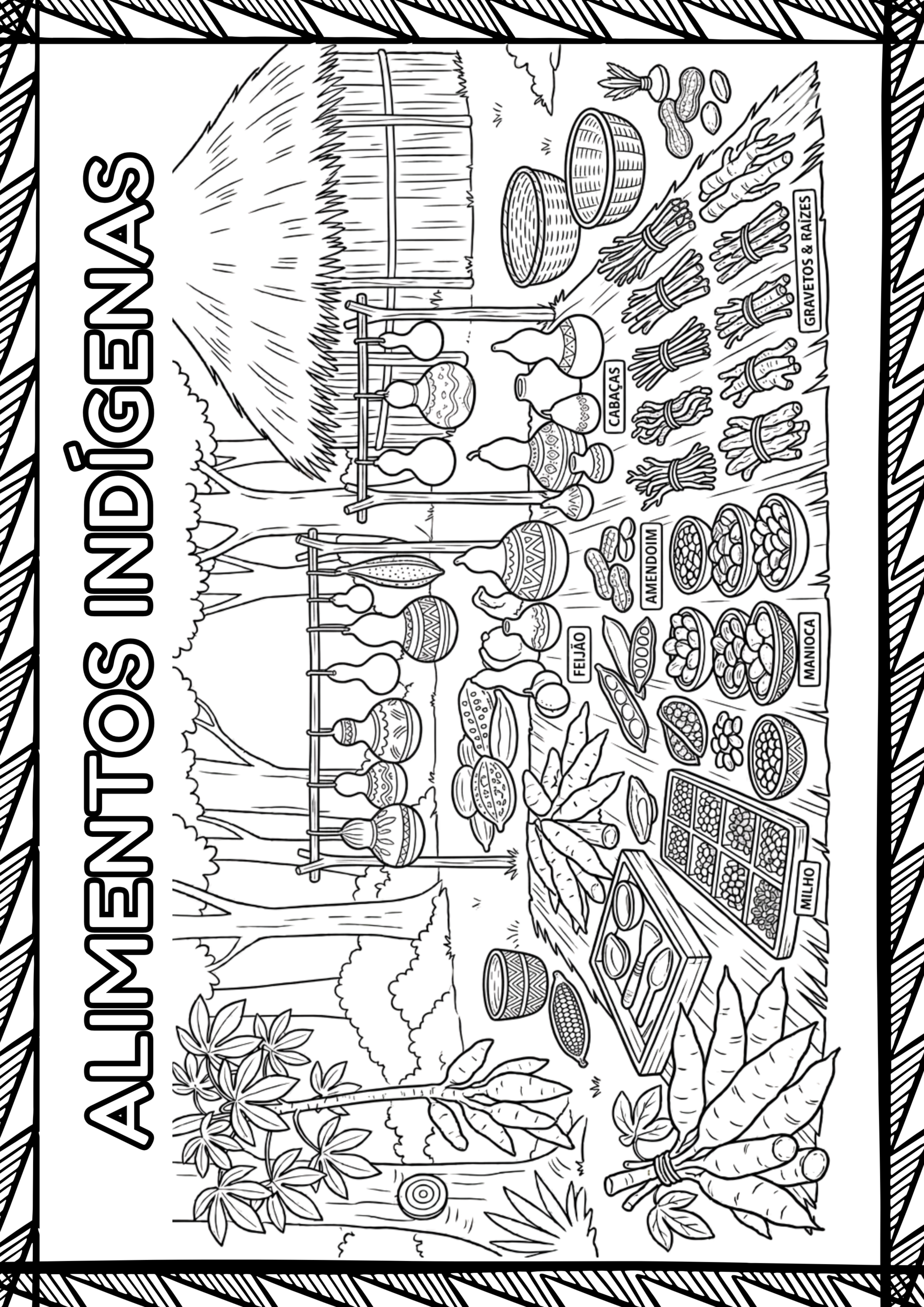 ✅ 7 Pôsters – Tamanho 38 x 53,8 cm. Consumo de papel: 4 folhas (Alimentos, cocar, oca, Brinquedos, alimentos, rituais, instrumentos)