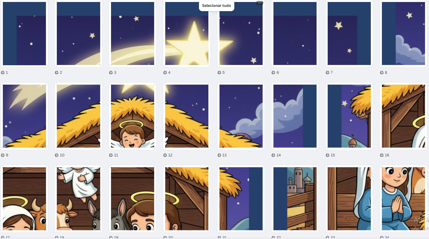 Linguagem Visual: Excelente recurso visual para contar a história do nascimento de Jesus de forma clara e envolvente para crianças.