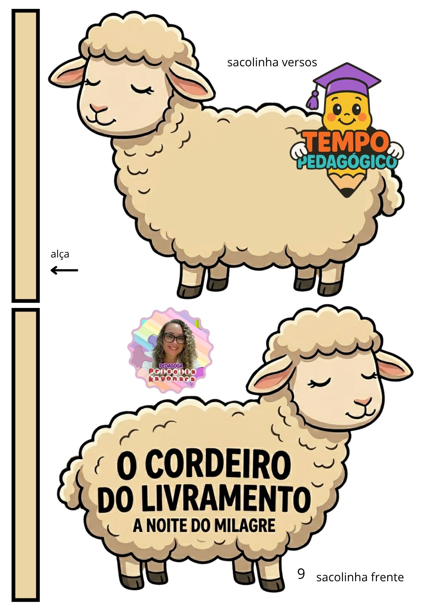 A Sacola Interativa (Formato de Cordeiro): Esqueça os recursos visuais sem graça! Nossa sacola tem o formato do próprio Cordeiro, servindo como cenário e suporte para a contação. É o “fator uau” que vai fazer as crianças sentarem e ouvirem com os olhos brilhando.